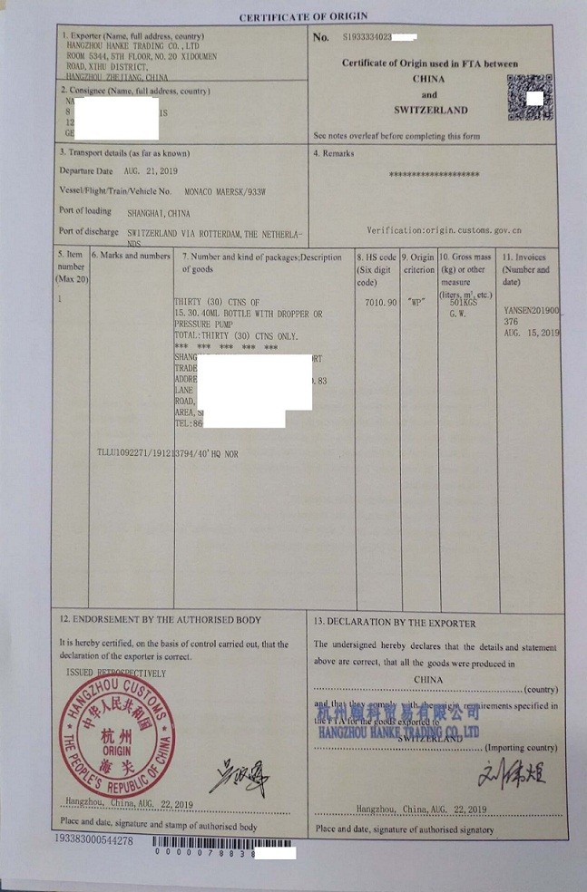 瑞士原产地证FORMS办理流程