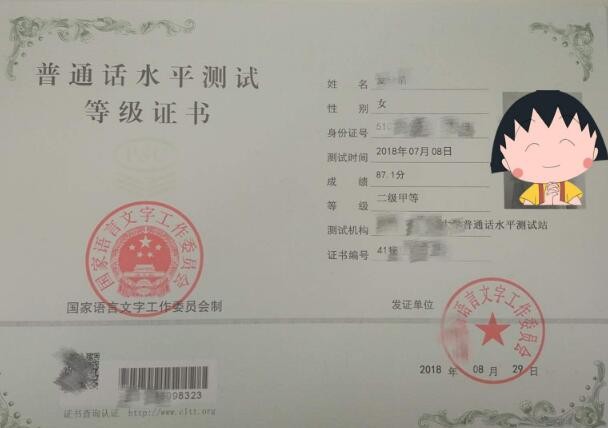 普通话等级证书