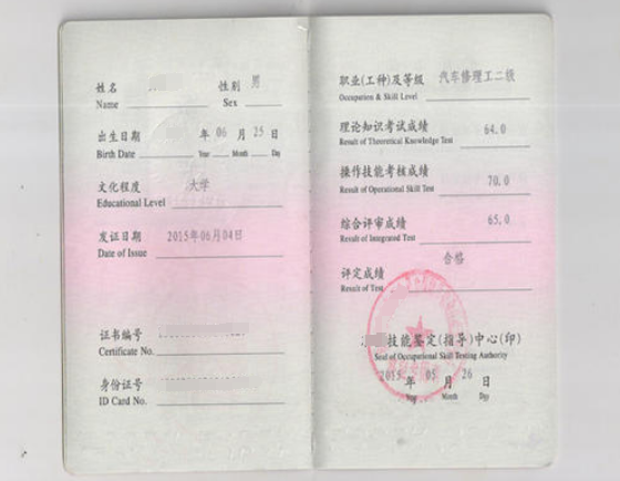 汽车维修工等级证