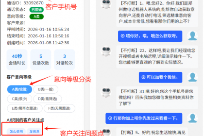 此外,没有经过优化的话术是用不出效果的,机器人后期使用过程中,需要根据拨打情况,和客户的反馈,不断调整优化话术,增加关键词,只有这样,机器人才能用出的效果