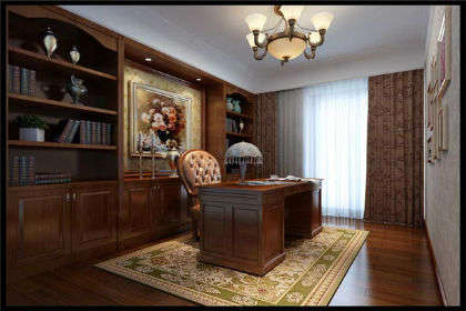 书房是看书办工的地方,只有安静的环境才能给人也专心的工作。所以书房装修要尽量选择一个相对独立的空间,离人多的地方远一点,创造一个安静的外部环境。选用一些隔音、吸音效果好的装饰材料,顶面可采用吸音石膏板吊顶,墙壁可采用软性壁纸等装饰,地面可采用吸音效果佳的地毯,窗帘要选择较厚的材料,以阻隔窗外的噪音。