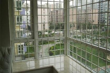4、在安装完毕后采用拉铆钉固定骨架,骨架上会留有一条细缝,既不美观也不。由于紧网式防盗网采用螺丝钉拉紧钢丝,这在受力角度方面考虑,属于点受力,所以骨架拉紧后会相对不。