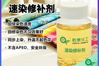 乾泰化工速染修补剂QT-1218针对涤纶织物分散染料染色场景研发,具备优良的促染性能与移染性,可替代多种传统染色助剂,实现“一剂多效”的应用价值;能显著加快分散染料的染色速度,提升